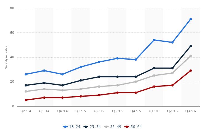 Remember when we all used to rotate our phones a gajillion times a day? It almost evoked a second coming of the carpal tunnel generation, but phones (and screens) have come a long way. The average screen size has doubled since 2007 and the average internet speed has tripled since 2011 making phones a viable place to watch videos on a regular basis.